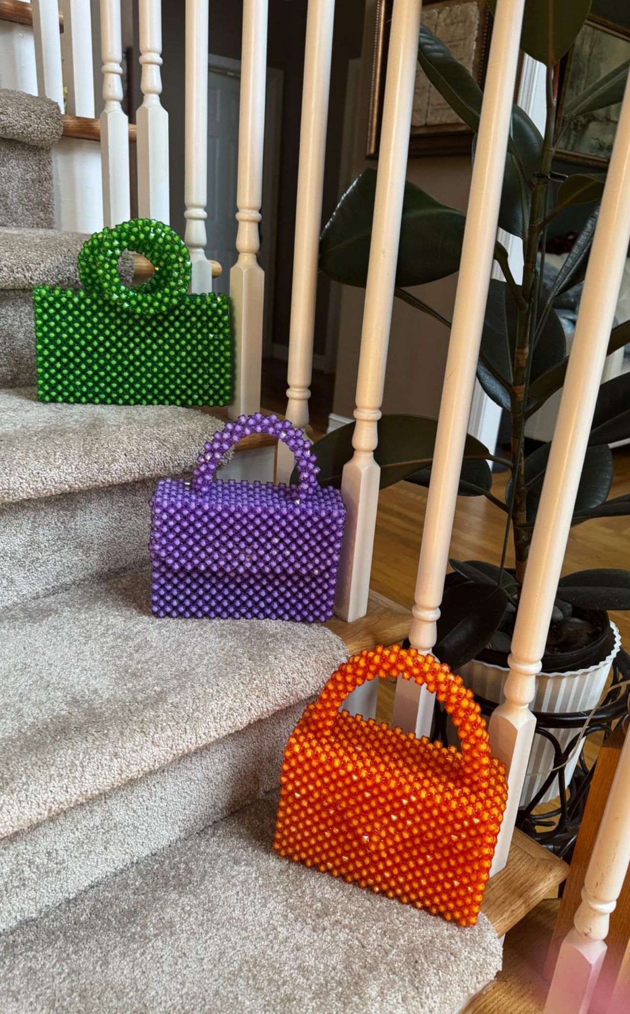 The Sade is your go-to top-handle bag for when you want to stand out without saying a word. Bursting with color and packed with personality, this handmade beauty brings the fun to any fit — day or night. She’s playful, confident, and full of that effortless charm (just like her namesake).